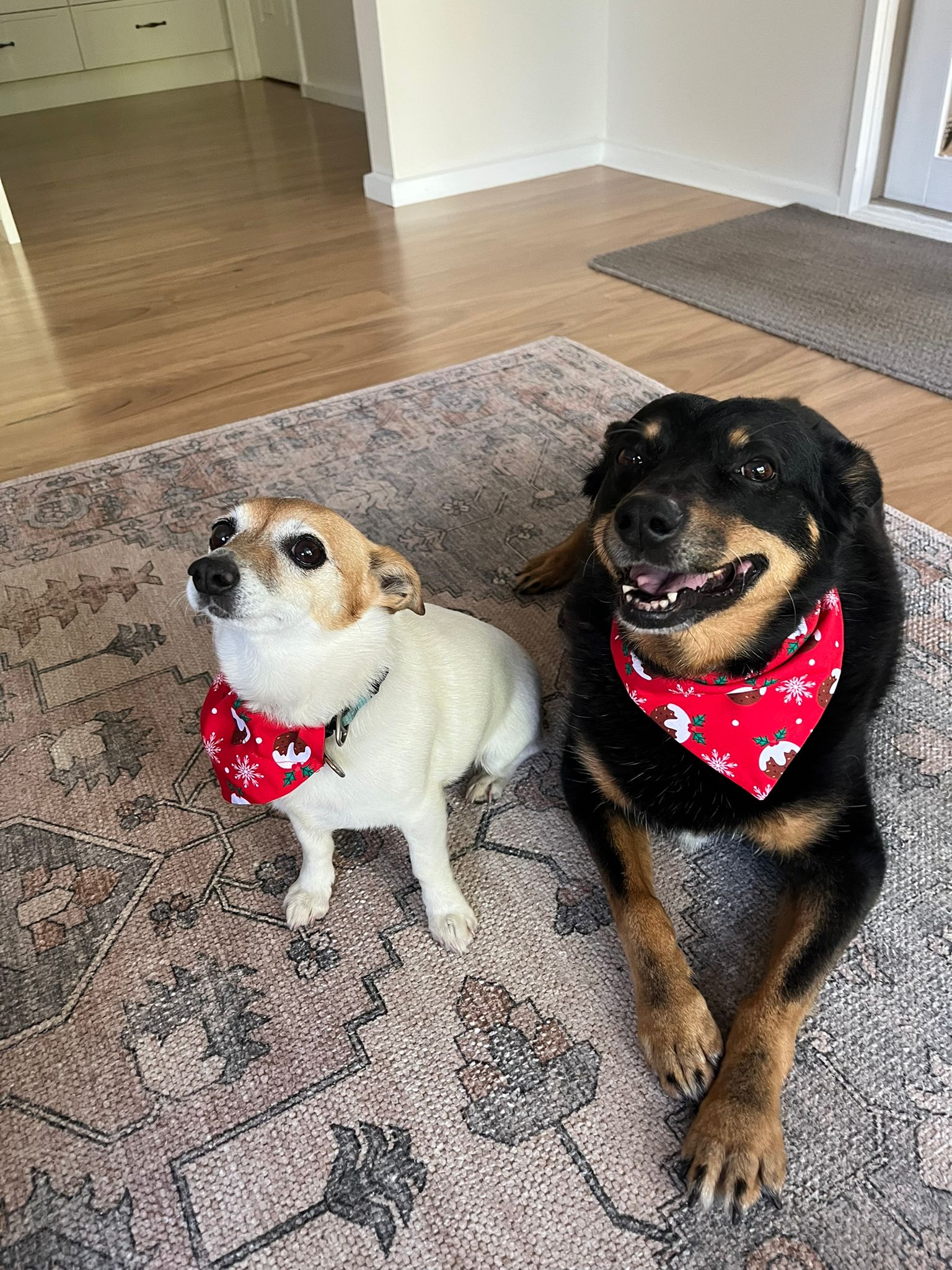 ✨ Our staff-pets rocking the Christmas spirit with their hand made Chrissy bandanas.